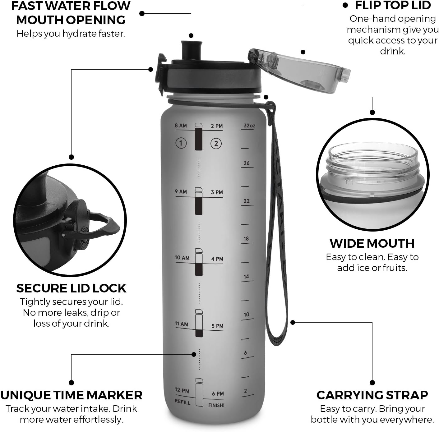 Color: 32 oz Water Bottle with Time Marked